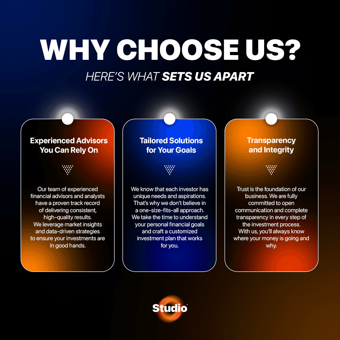 The new social media design led to a 45% increase in followers and a 65% boost in engagement rates within three months. Client inquiries grew by 30%, and the cohesive visual identity strengthened brand recognition, positioning the firm as a trusted and modern leader in the investment industry.