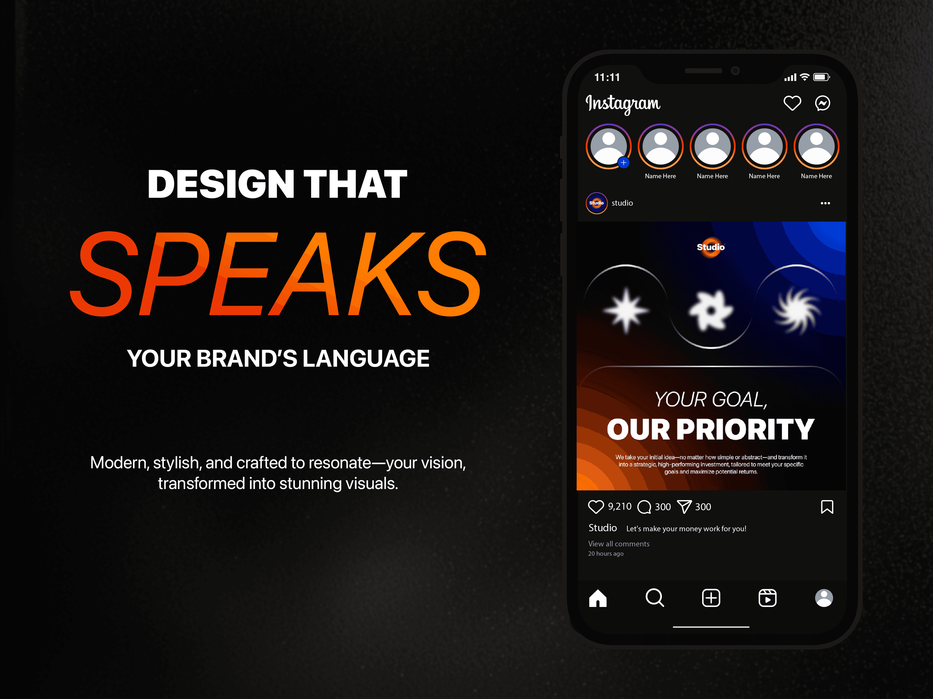 Developed a cohesive visual style using modern typography, distinctive compositions, and a bold color palette to establish a recognizable and professional brand presence across social media.